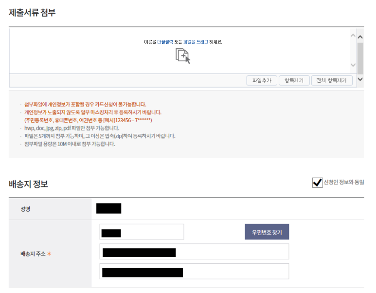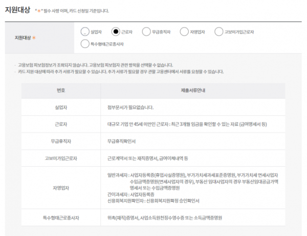 상황에 맞는 서류를 온라인으로 첨부 (구직신청서, 재직 증빙서류 등)