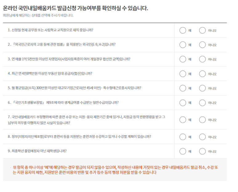 ****고용24에서 내일 배울카드 자격 조회하는 방법****