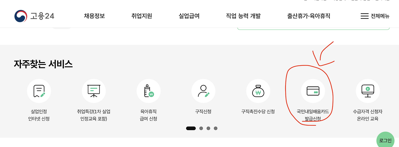 4.[고용서비스 → 국민내일배움카드] 메뉴 클릭
