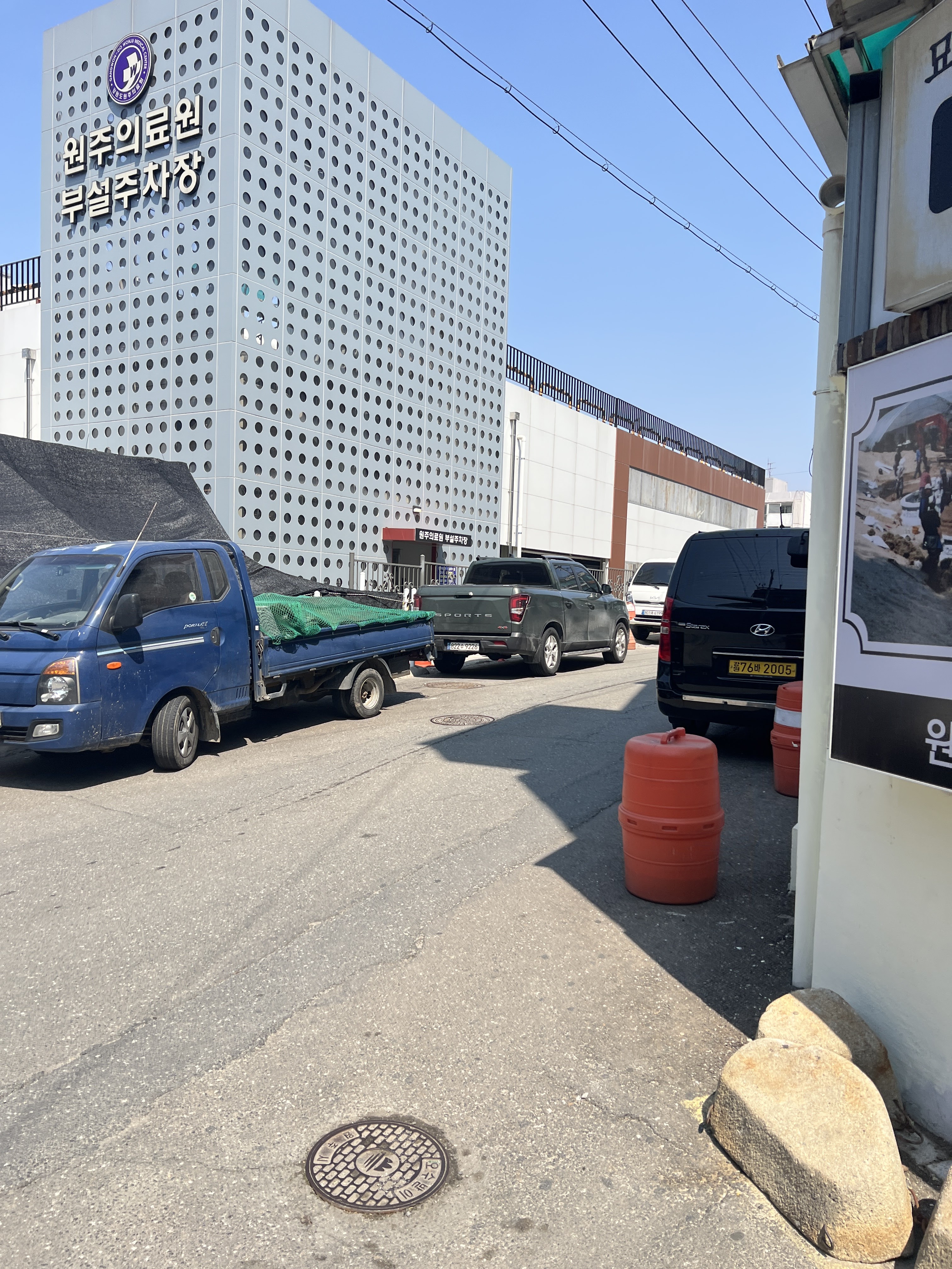 원주 의료원 부설 주차장이 보입니다.