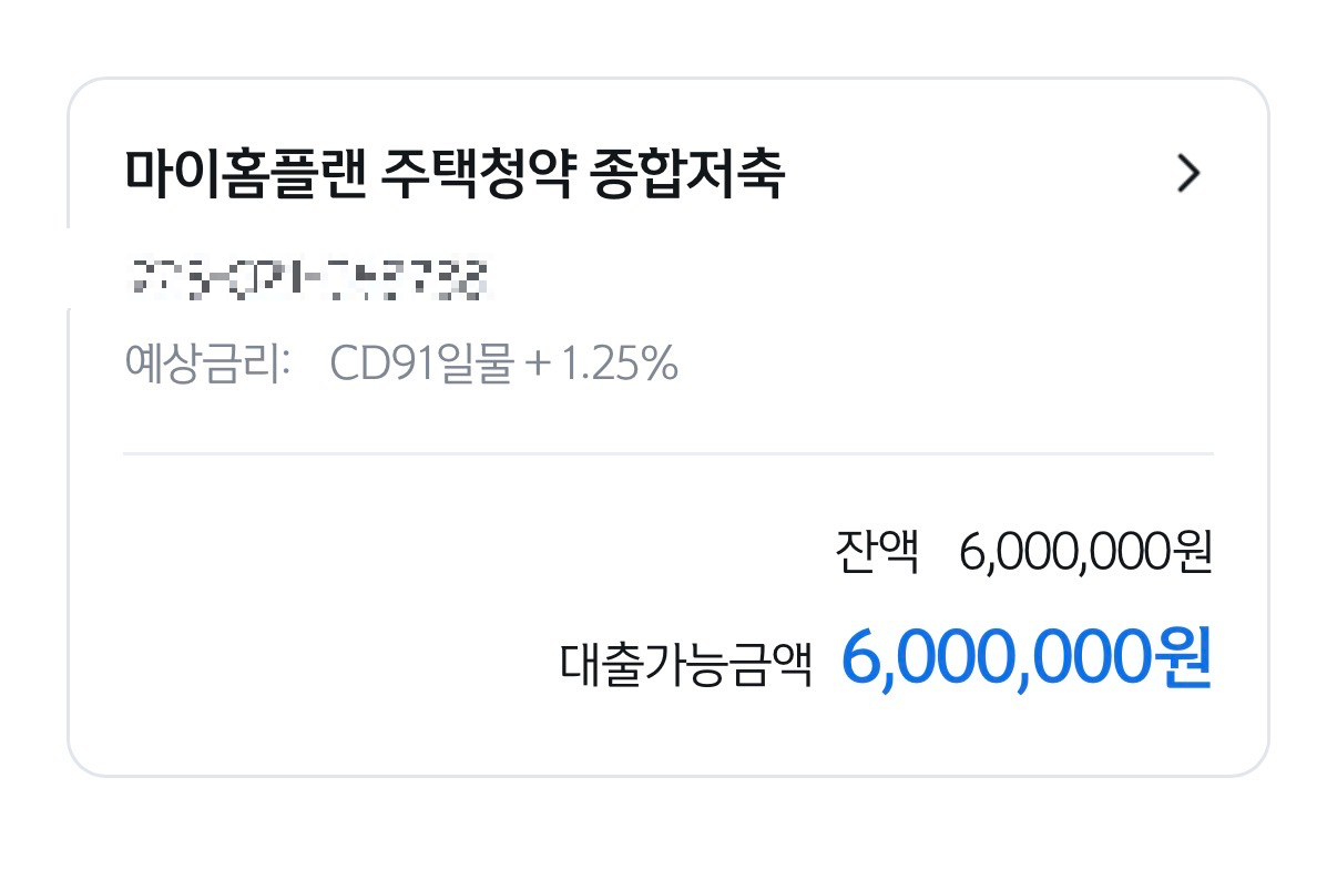 계좌에 있는 나의 주택청약적금 통장의 잔액